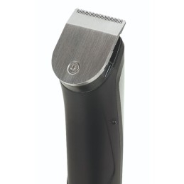 Máquina de cortar cabelo leve e silenciosa. Ideal para corte de cabelo de homem. A altura do corte é regulável por um sistema multi-furos de 0 a 2 mm. O aço inoxidável tem uma dureza de 60° rockwell mantendo o fio bem afiado durante muito tempo.